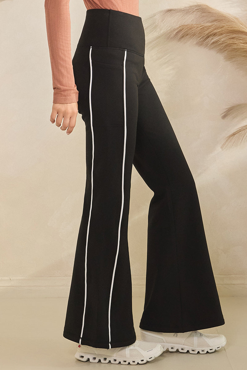 Keep moving and stay chic with these fleece lined leggings, the side pockets and flared legs make these perfect for running errands, light workouts, comfy travel, or just lounging at home.