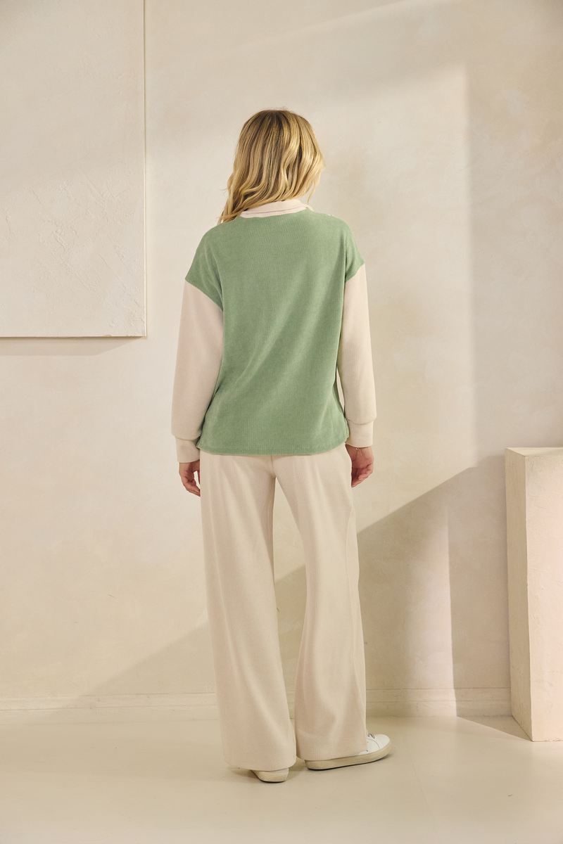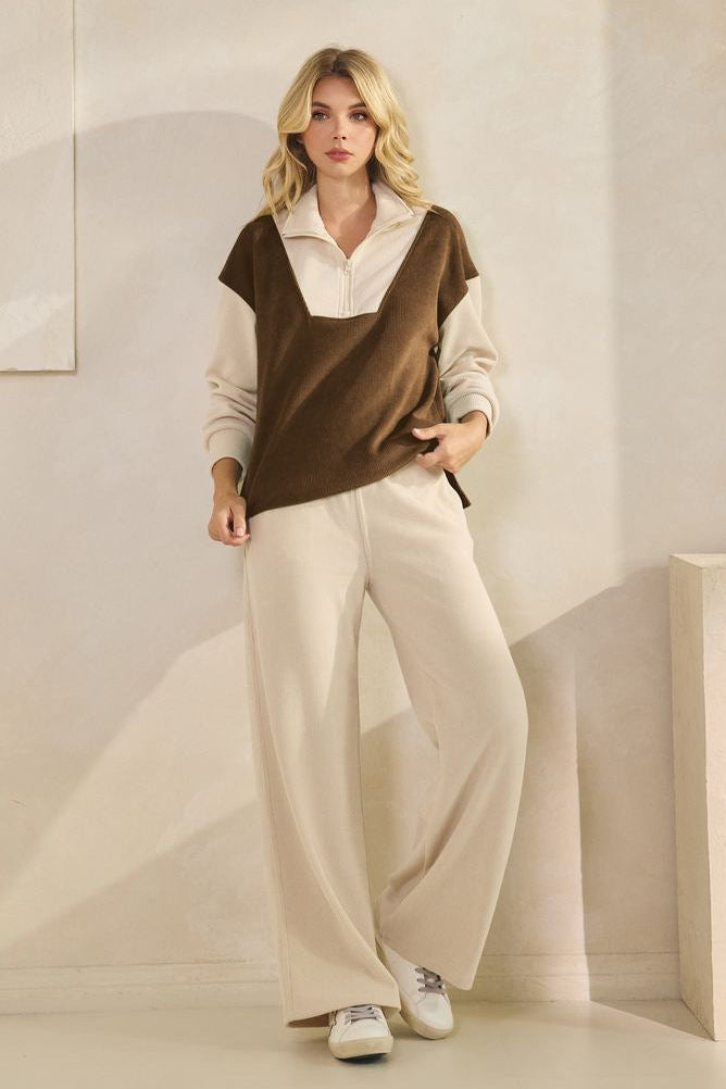 Upgrade your wardrobe with this ultra-soft corduroy colorblock pullover top and Ivory pants set. Effortless style and cozy comfort for lounging or stepping out.